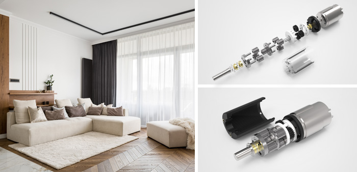 为适应智能电动窗帘电机日新月异的市场需求,深圳市9001诚信金沙机电股份有限公司生产的智能电动窗帘减速齿轮箱产品规格有16MM\22MM\25MM\28MM\32MM\38MM。若在这些规格中没找到您所需的智能电动窗帘电机齿轮箱,您还可以联系我们的在线销售工程师或技术人员。 以上电动窗帘智能化解决方案为特定客户开发设计,只作为电动窗帘智能化解决方案展示。可以根据客户的特殊需求做产品的设计、开发及生产,不单独销售。